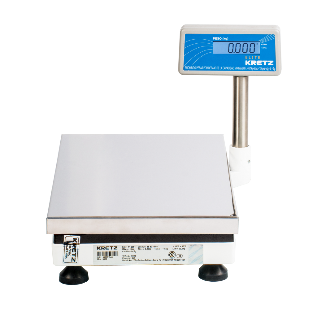La Kretz Elite Eco 2 es una balanza comercial con conexión a PC, POS y cajas registradoras, ideal para supermercados, almacenes, carnicerías, panaderías y dietéticas. Con funciones de transmisión continua o a pedido de peso, visor LCD retroiluminado y bandeja de acero inoxidable, es una herramienta confiable para la gestión diaria en el punto de venta.